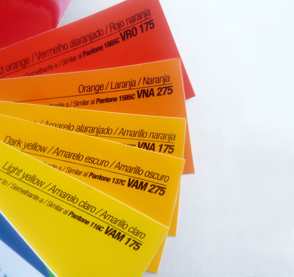 Película de PVC flexible semirrígida, calandrada monomérica con acabado brillante. Son películas intermedias que permiten determinado de la luz sin ser translucidas. Adhesivo P1 - Permanente 1 - alta transparencia y muy buena cohesión.
